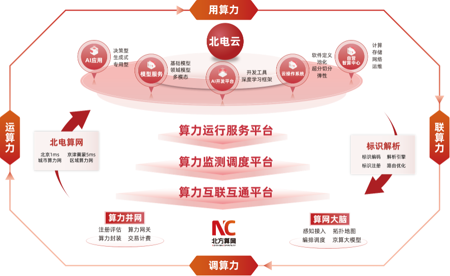 北方算网展出以“联调运用”为核心的城市级AI基础设施运营“北京模式”,涵盖“联算力”“调算力”“运算力”“用算力”等关键环节的业务布局,构建起完整的城市级AI基础设施运营生态。此外,北方算网首次展示了在工业、能源等领域多个AI+解决方案。以能源行业为例,通过北电云以私有化部署,构建智算服务器集群和算力池化平台,搭配AI开发平台与可视化运维中心,可为能源保供类企业提供针对智能巡检等应用场景的一体化解决方案。