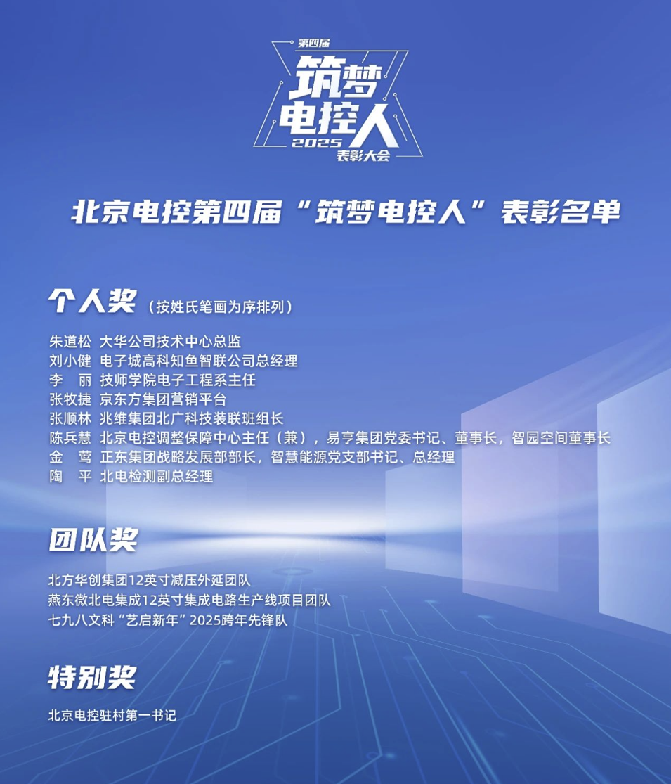 会上,北京电控党委副书记、总经理李前宣读表彰决定。本次受表彰的“筑梦电控人”共8位个人、3个团队和1个特别奖,他们都是全系统各领域为北京电控芯屏产业生态建设作出突出贡献的先进典型。
