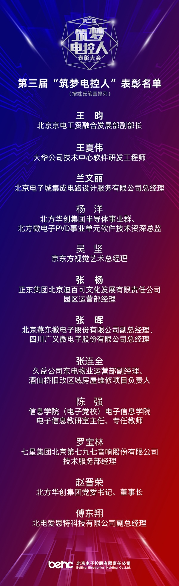 长期以来,北京电控高度重视企业精神文明建设,通过先进典型的示范引领作用构建良好文化氛围。“筑梦电控人”是北京电控面向全系统举行的重大表彰活动,自2018年以来已经举办三届,共评选出34位蕴含着电控人的精神风貌和价值追求的筑梦人物。本届“筑梦电控人”评选表彰活动,延续了前两届的经验做法,同时又结合实际进行创新,引入了各单位选拔预热、评审委员会提名等环节和机制,在网络投票环节创下了7天浏览量近80万、总投票40余万的记录,充分彰显了北京电控广大干部职工崇尚先进,学习先进,争当先进的精神追求,为北京电控产业高质量发展汇聚了强大正能量。