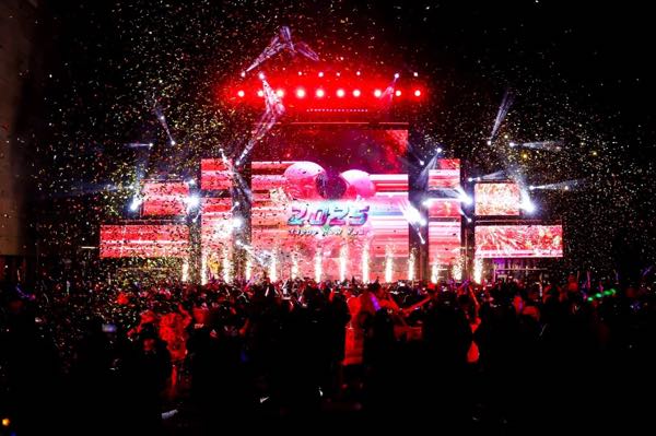 “3、2、1,新年快乐!”在798·751园区,人群跟随园区中心广场上巨型屏幕的数字变幻,异口同声地喊起了倒计时,在喜庆热烈的节日氛围中释放激情,共同迎来崭新的2025年。12月31日晚,伴随新年钟声的敲响,兼具艺术与科技、传统与流行的798·751园区“艺启新年·2025艺术跨年之夜”活动圆满落下帷幕。本次活动由市文化和旅游局、商务局、朝阳区人民政府和北京电控指导,朝阳区有关单位和北京电控所属七九八文科、京东方集团联合主办。
